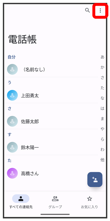 電話帳画面が表示されます。