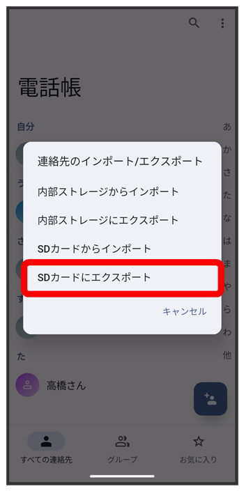 SDカードに電話帳データを保存する