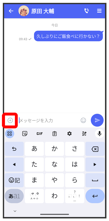 をタップすると画像/動画が添付されたメッセージが送信されます。
