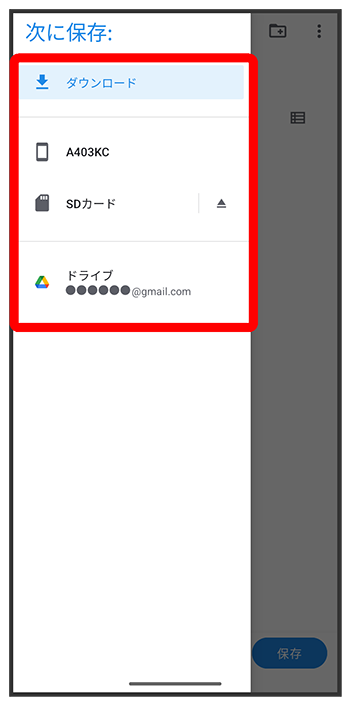 - 端末内へ保存したい場合は機種名/ダウンロードを選択します。