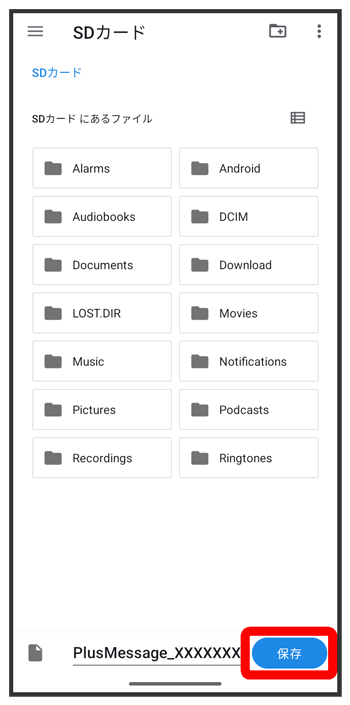 - バックアップしたデータのファイル名は「PlusMessage_」から始まり、拡張子は「.backup」になります。たとえば「PlusMessage_XXXXXXXX.backup」となります。