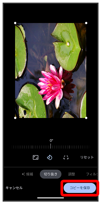 - 画面下の目盛を左右にドラッグして傾き調整を行うこともできます。