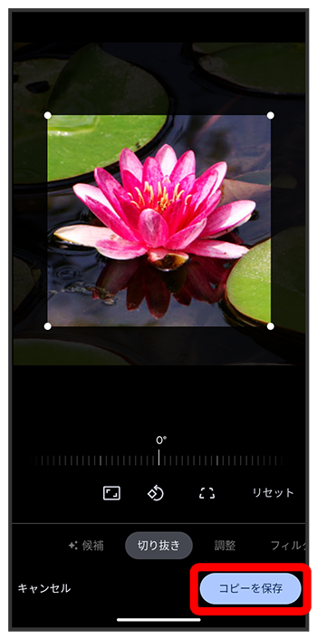 - 写真をドラッグして、切り出す枠内で位置を調整することもできます。