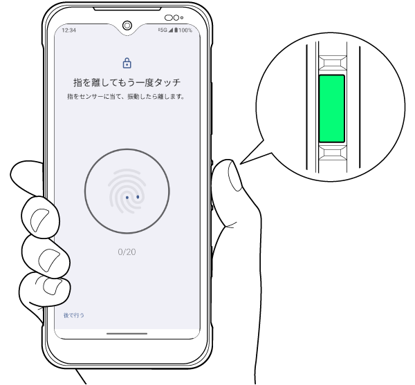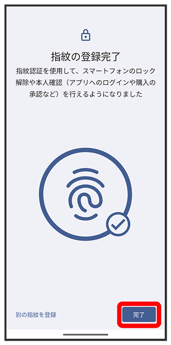 - 電源キー/指紋センサーに指を触れたまま指紋の登録や認証を開始すると、起動できない場合があります。指を離し、再度操作してください。