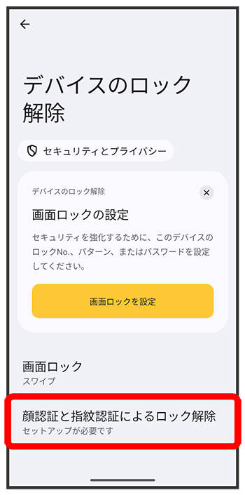 画面の指示に従って、予備の画面ロック解除方法を設定