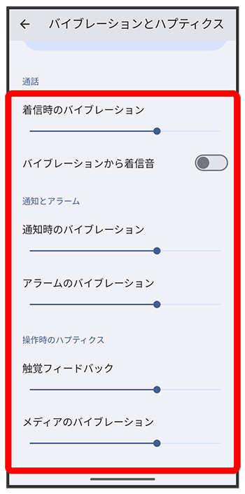 着信時にバイブレーションを動作させるかどうかを設定します。