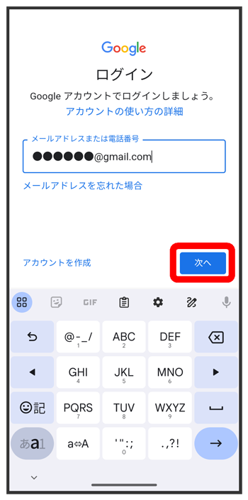 Google アカウントのログイン画面でメールアドレスまたは電話番号を入力
