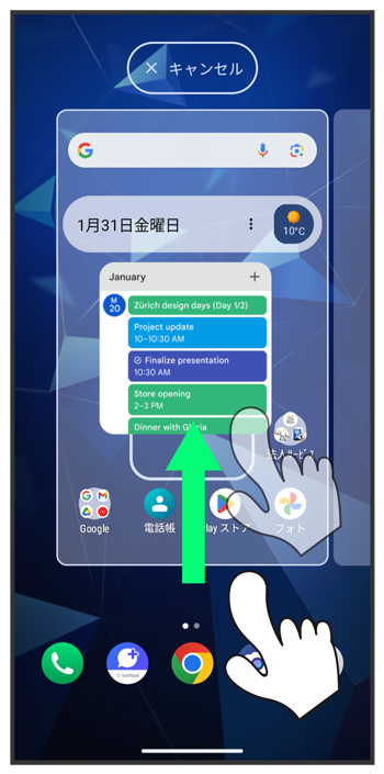 ホーム画面で対象のアイテムをロングタッチ移動したい場所にドラッグウィジェットやアイコンを削除する