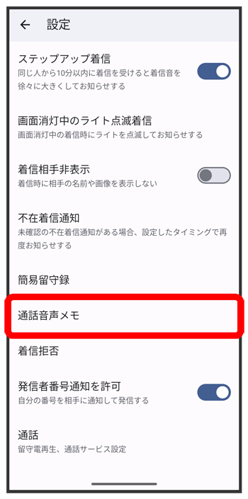 通話開始と同時に通話音声メモの録音を開始するにはあらかじめ設定が必要です。