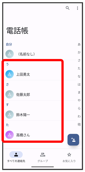 電話帳画面が表示されます。