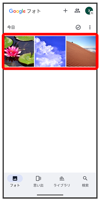 写真/動画一覧画面が表示されます。