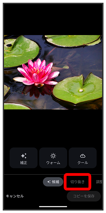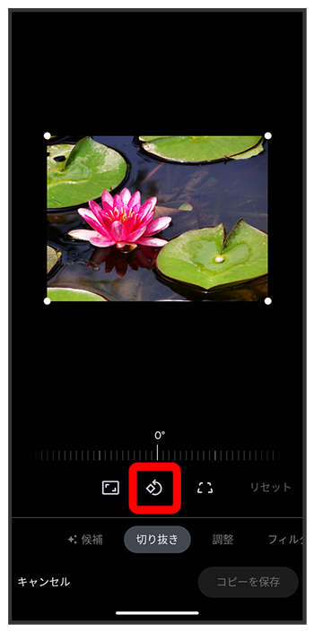 トリミングと回転画面が表示されます。