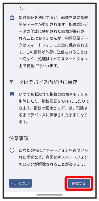 指紋設定画面で登録した指紋の画面消灯時に指紋を認識するように設定する