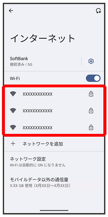 接続状況、電波強度、周波数、セキュリティなどが表示されます。