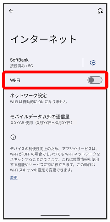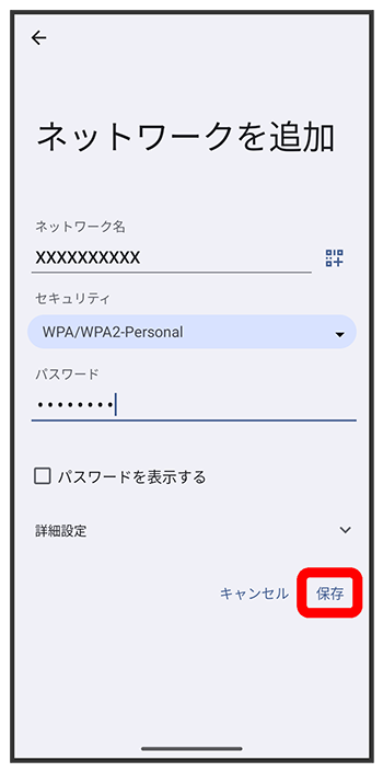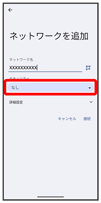 - 非公開ネットワークのアクセスポイントのときは、をタップして、「非公開ネットワーク」をに変更してからをタップしてください。