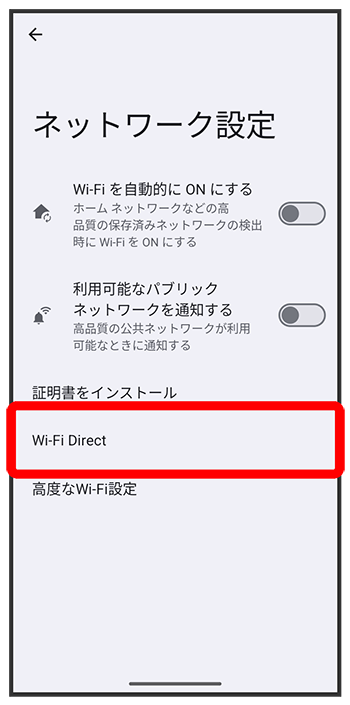 Wi-Fi Direct設定画面が表示されます。