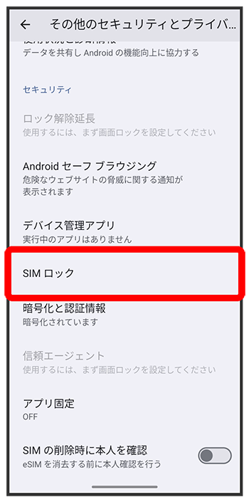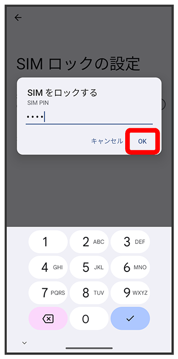 PINコードを有効にすることで、USIMカードを本機に取り付けた状態/eSIMが有効な状態で電源を入れたとき、PINコードを入力する画面を表示するように設定できます。