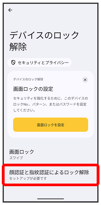 顔データを登録すると、画面点灯時に自動的に顔認証され、ロックが解除されます。