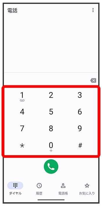 ダイヤルキーをタップして相手の電話番号を入力