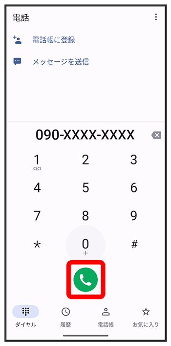電話番号発信画面が表示されます。