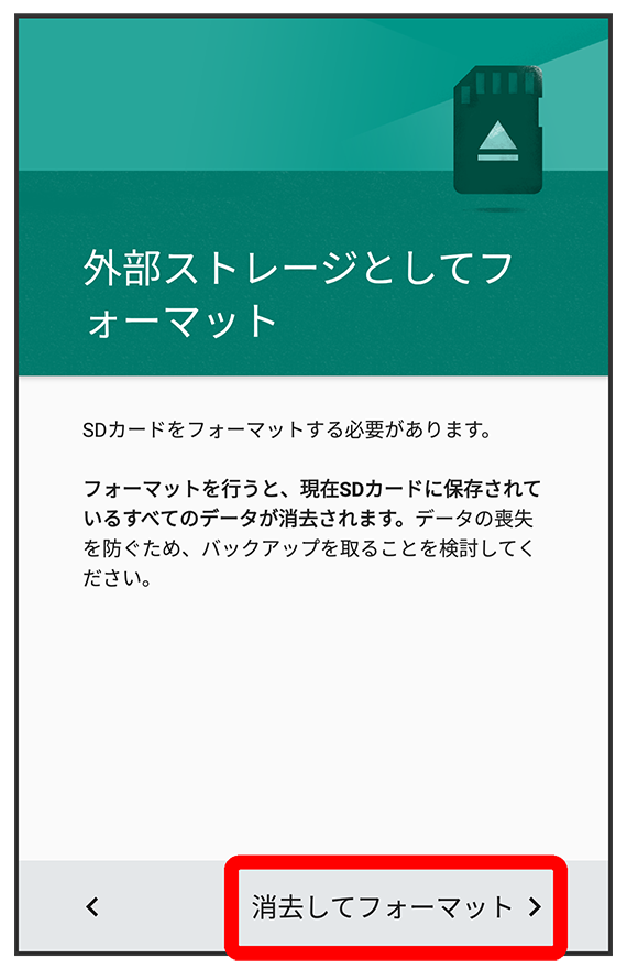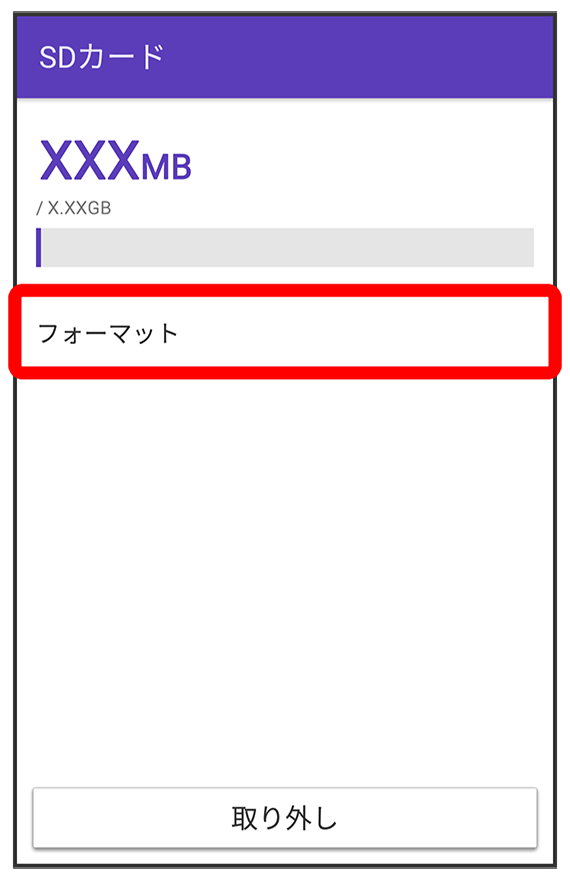 - フォーマットすると、SDカード内のデータがすべて消去されます。ほかの機器で使用したSDカードをフォーマットするときは、あらかじめよくご確認のうえ、操作してください。