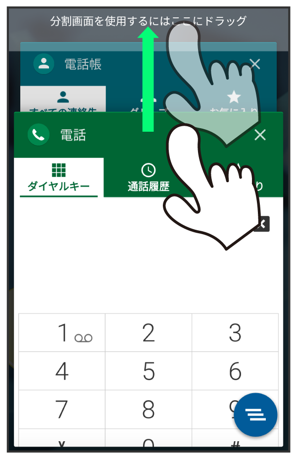 - ドラッグしたアプリがマルチウインドウ画面上部に表示されます。