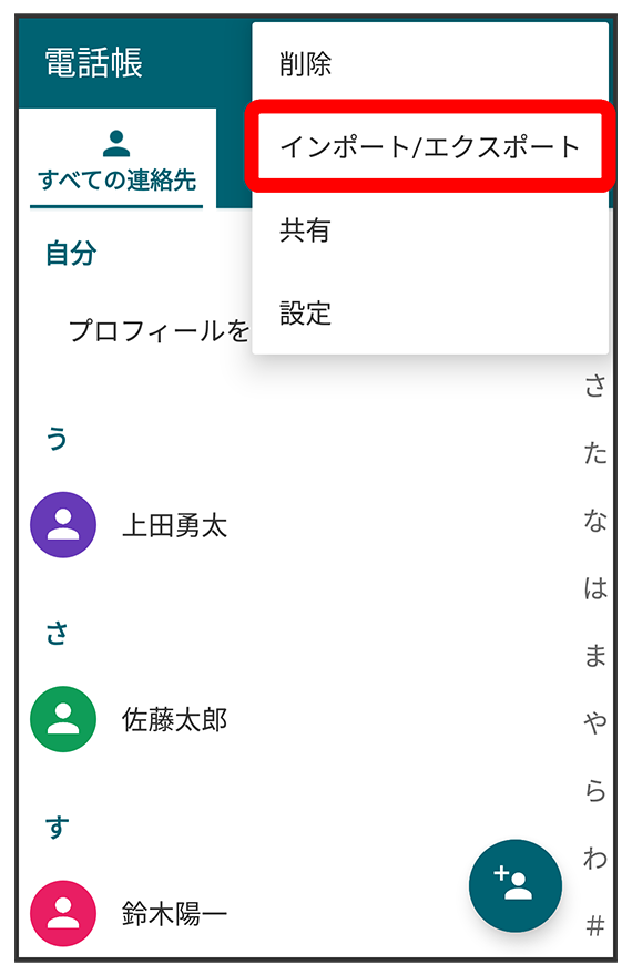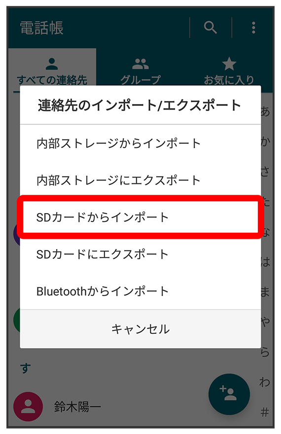 SDカードに保存(バックアップ)した電話帳データを読み込み(インポート)できます。