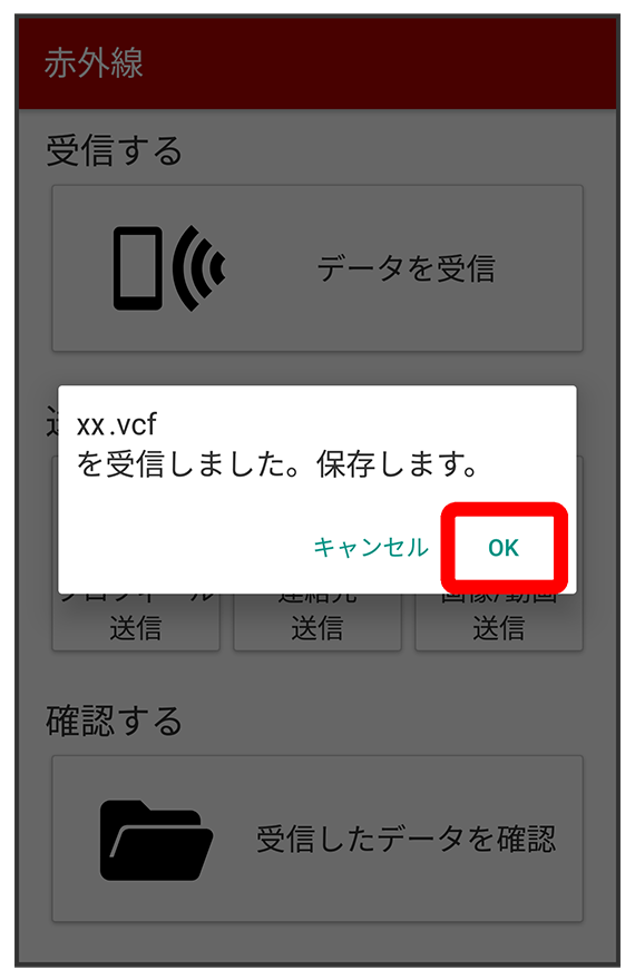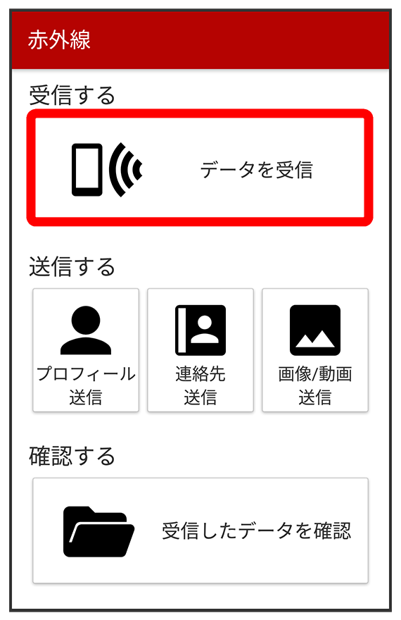 相手側でデータ送信の操作を実行本機と送信側の機器の赤外線ポートを合わせる