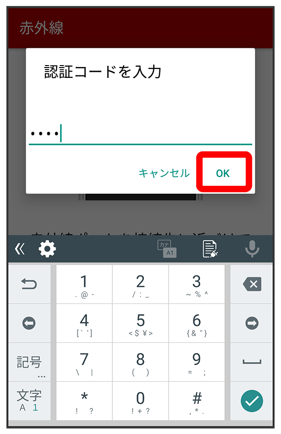 - 認証コードは、正しい通信相手かどうかをお互いに確認するための暗証番号です。送信側/受信側で同じ数字(4桁)を入力します。特に決まった数字ではなく、その通信限りのものです。