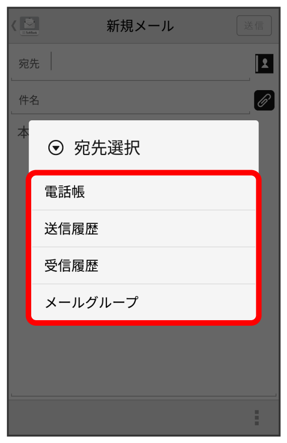 - //をタップすると、電話帳/送信履歴/受信履歴から宛先を選択できます。