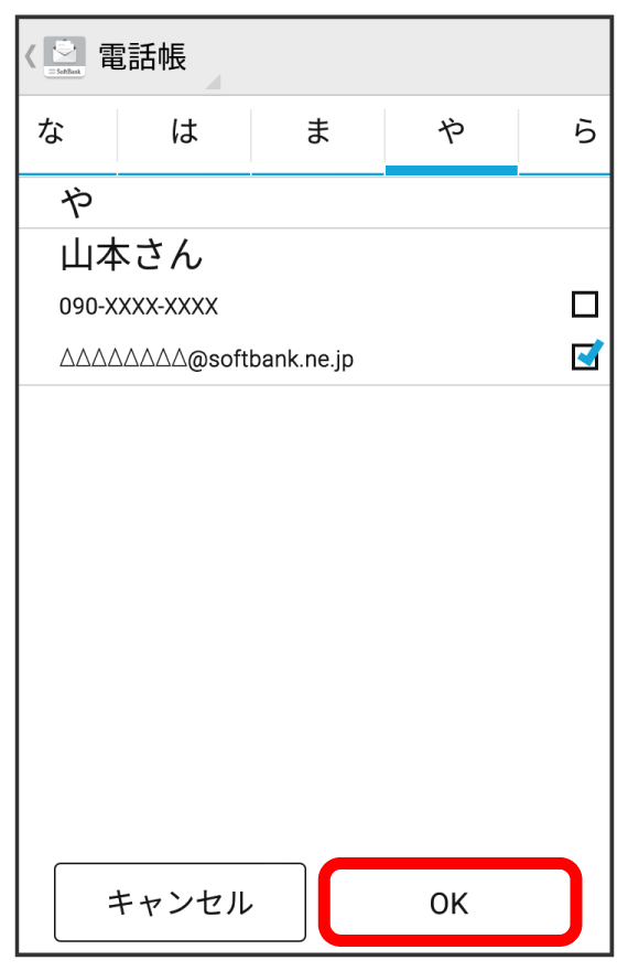 - をタップすると、メールグループを選択して、メールグループに登録されたすべての宛先を送信する宛先に設定できます。