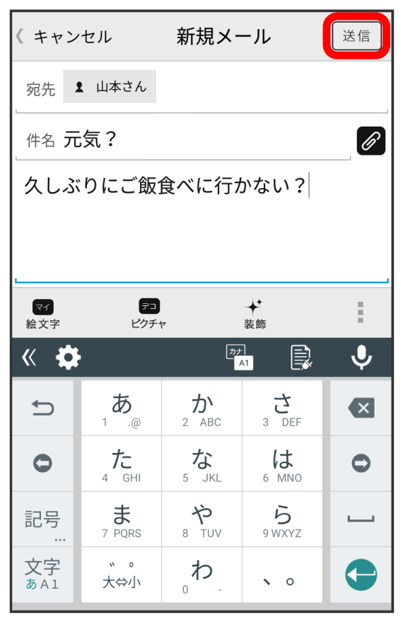 をタップするとファイルを添付できます。詳しくは「ファイルを添付する」を参照してください。- 件名を入力/ファイルを添付するとS!メールでの送信になります。