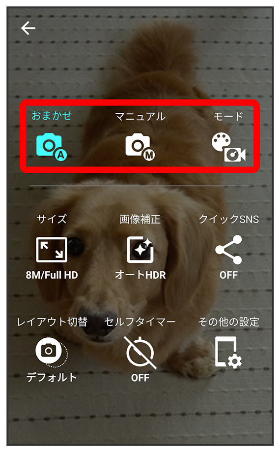 | モード | エフェクト/タイムラプス/夜景/スポーツを設定します。 |