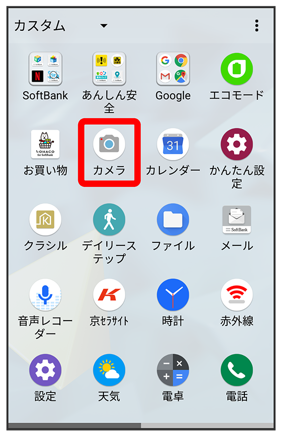 - 撮影画面を右にフリックしても、設定メニュー画面を表示することができます。