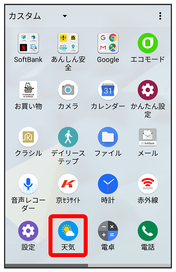 (天気)をはじめて起動したときの操作を例に説明します。