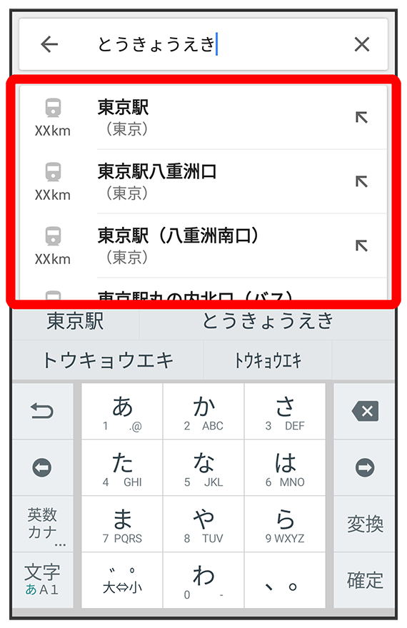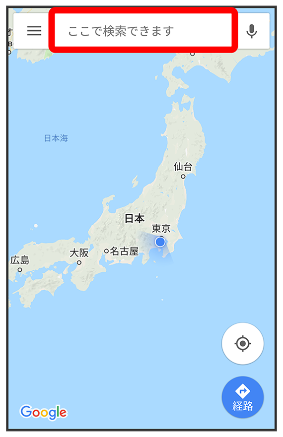 住所や都市、施設名などを入力選択候補から住所や都市、施設名などをタップ