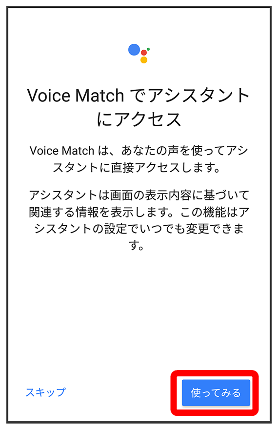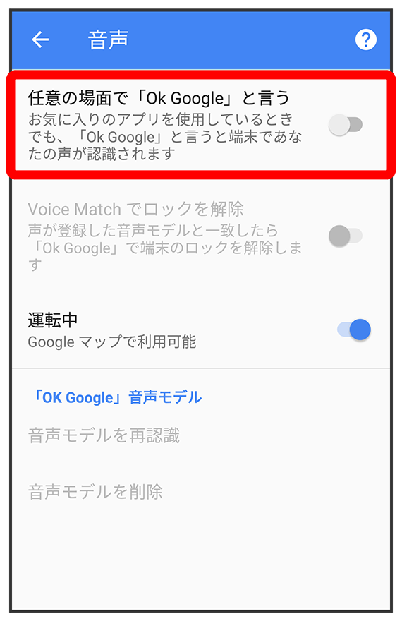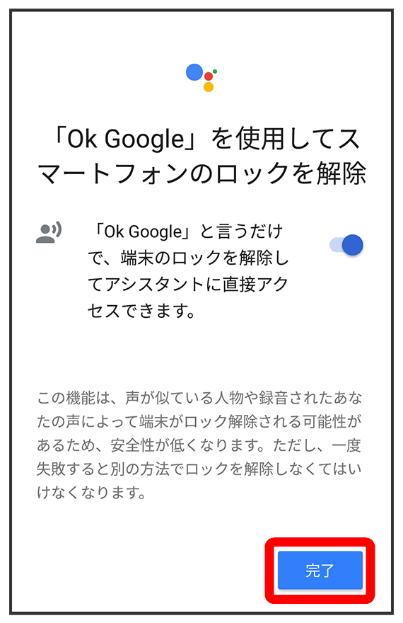 - すでに音声操作を設定したことがある場合は、音声アシスト機能がONに設定されます。