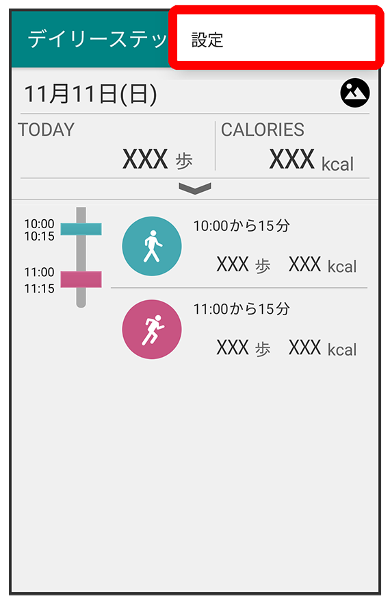 | 表示形式 | デイリーステップ画面のデザインを変更します。 |