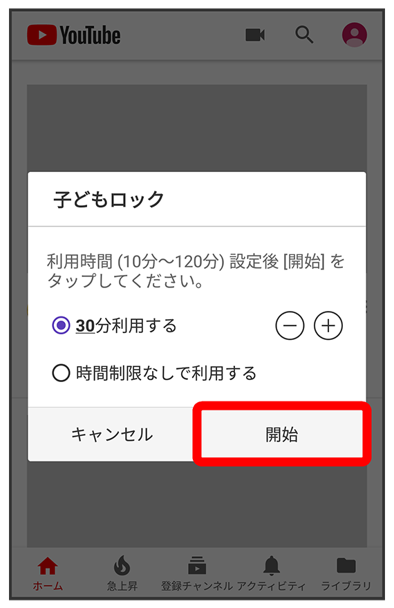 ホーム画面でセキュリティが設定され、子どもロックを解除する際にスタート画面のセキュリティ解除が必要になります。