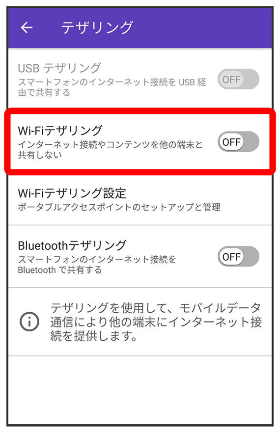 Wi-Fiテザリング機能を利用する