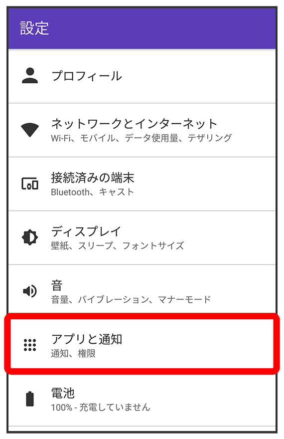 インストールしたアプリや、通知に関する設定ができます。設定できる項目は次のとおりです。