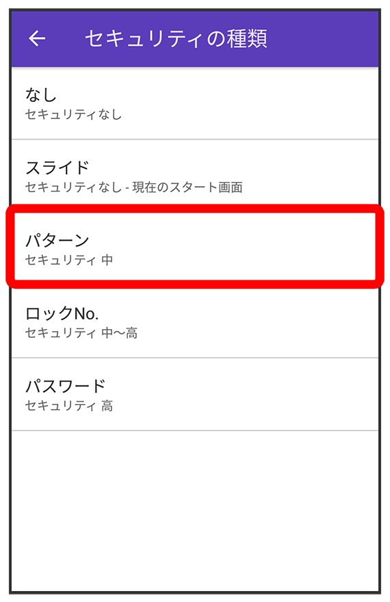 パターンを指でなぞってスタート画面のセキュリティを解除するように設定する