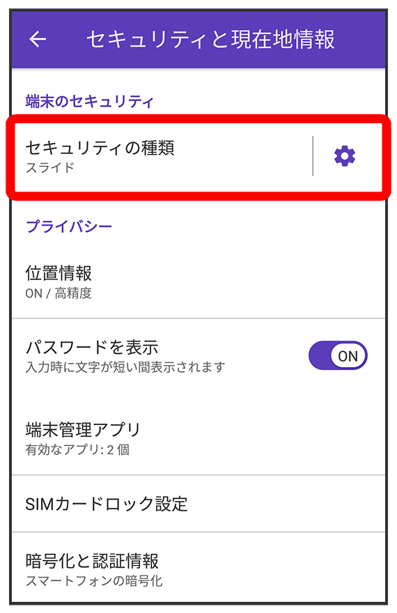 - 変更前のスタート画面のセキュリティがまたは以外のときは、セキュリティを解除してください。