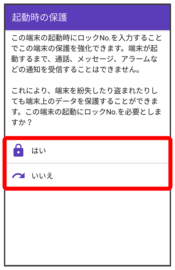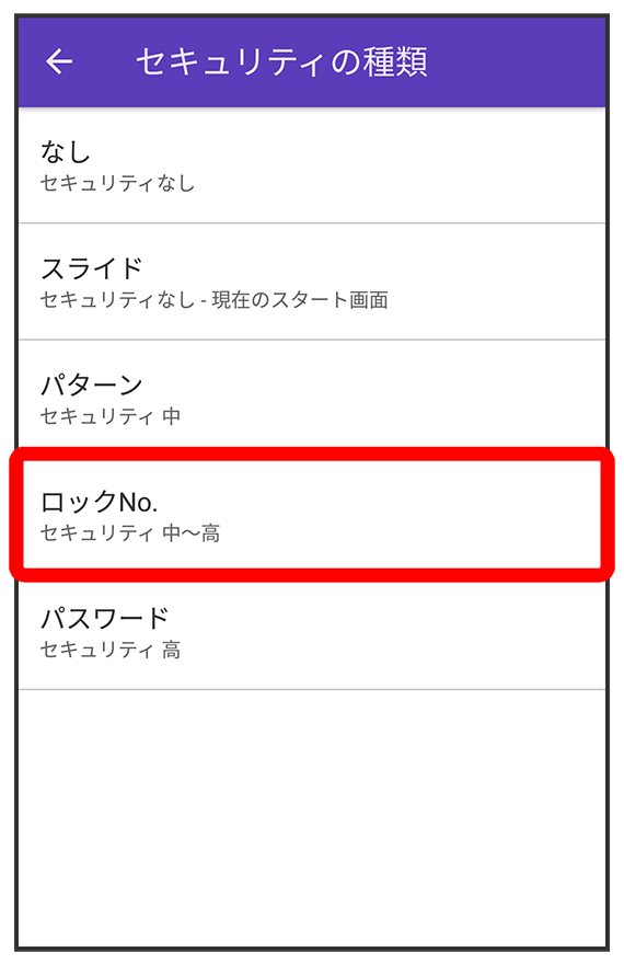 ロックNo.でスタート画面のセキュリティを解除するように設定する