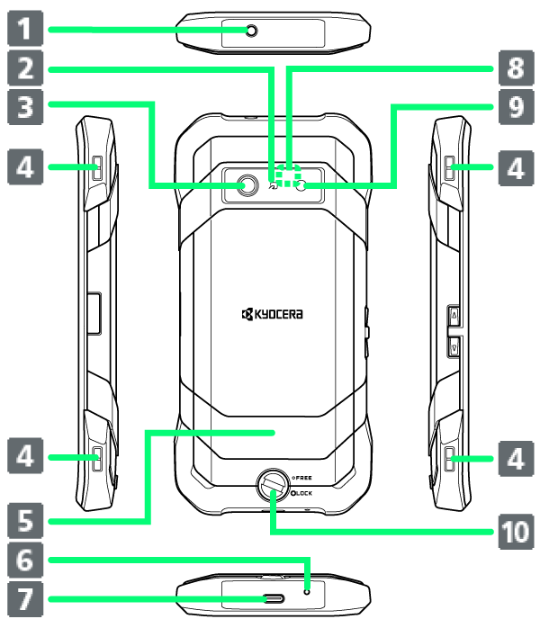 | 電池カバー | USIMカードやSDカード、電池パックの取り付け/取り外し時に取り外します。 |