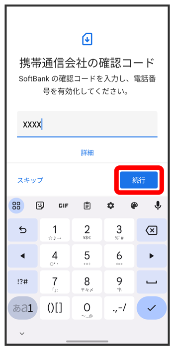 確認コードを入力