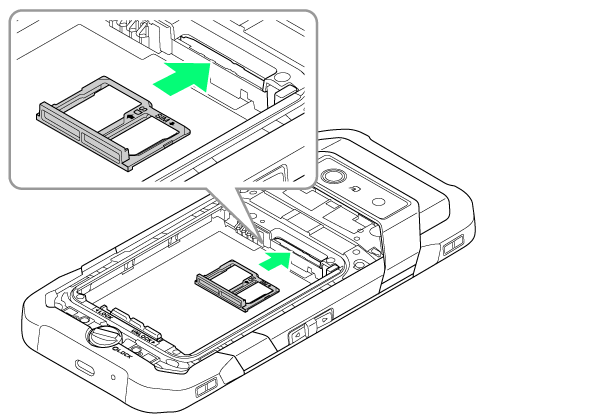 USIM/SDカードトレイを本体に差し込んで、奥までまっすぐ押し込む