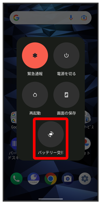 - バッテリー交換中は通信が停止されるため、着信や緊急速報メールの受信を行えません。