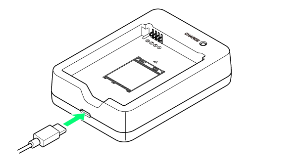 電池パック単体充電台(オプション品)にACアダプタ(付属品)のUSB Type-Cプラグを差し込み、電源プラグをコンセント(AC100V)に差し込む