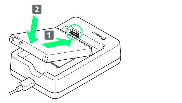ここでは、電池パックをオプション品の電池パック単体充電台[KYKFN1]に取り付けて充電する方法を説明します。